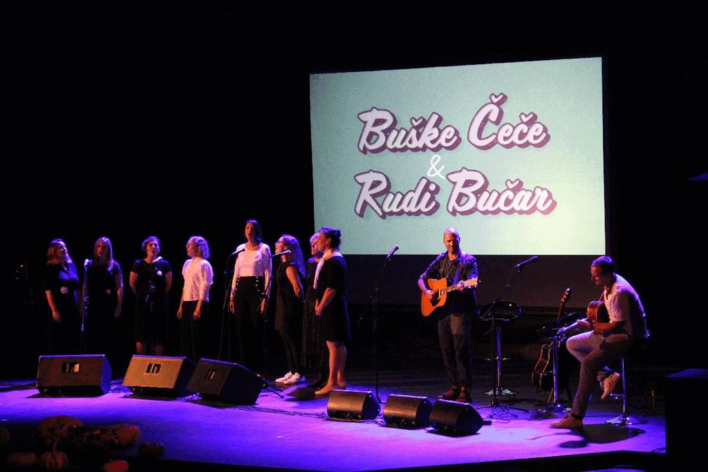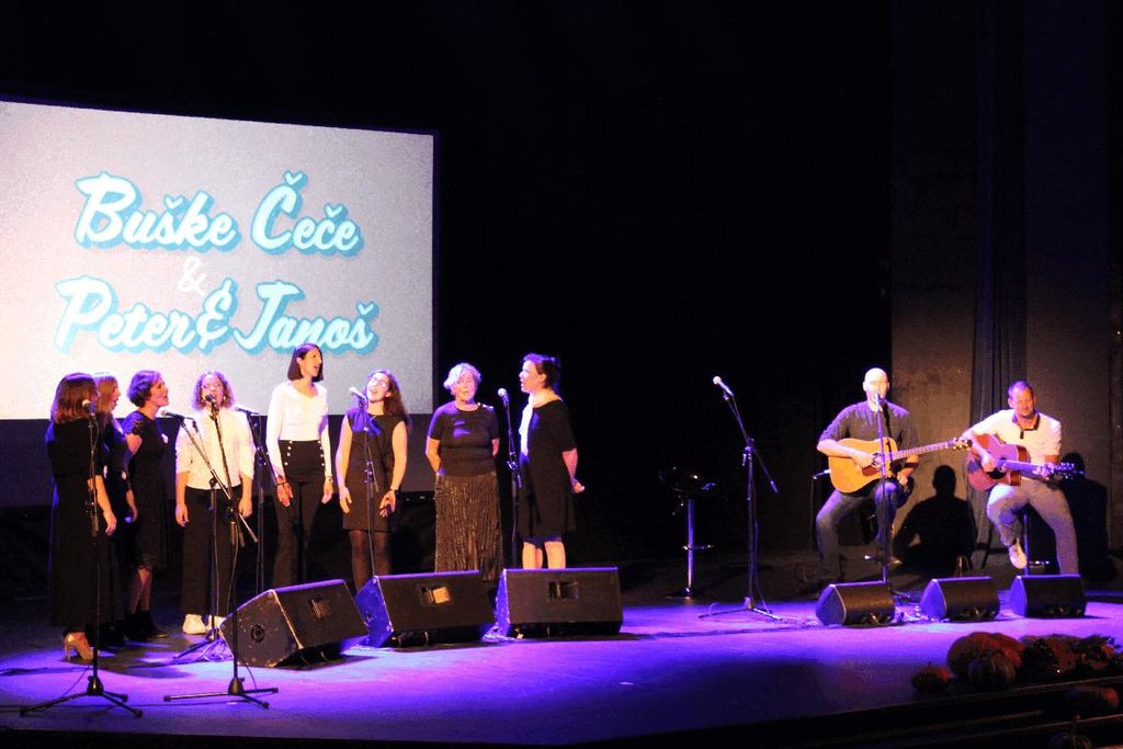 Ob dvajsetletnici pevske skupine »Buške čeče« so te v soboto, 7. 10., v KD Bovec pripravile krasen koncert z glasbenimi gosti Rudijem Bučarjem, Petrom Della Bianco in ob kitarski spremljavi Janoša Srdoča. Dogodka sta se med drugimi udeležila tudi župan Občine Bovec Valter Mlekuž in vodja območne izpostave JSKD Tolmin Silva Seljak.