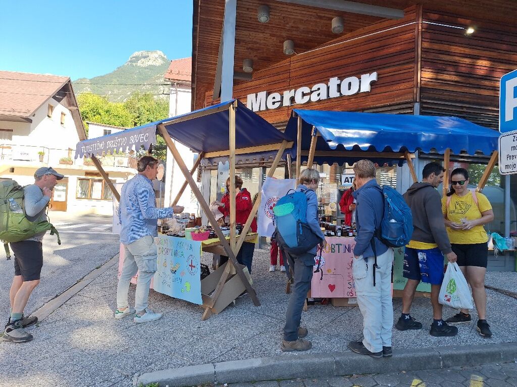 V četrtek, 18. 9. 2025, je pred mestnim marketom Mercator potekala dobrodelna akcija Drobtinica, ki je projekt, ki se v Sloveniji izvaja z namenom zbiranja sredstev za šolske sklade v posameznih okoljih. Skupaj z Osnovnimi šolami Bovec in Tolmin ter Mercatorjem, ki dovoljuje izvedbo Drobtinice na območju svojih trgovskih centrih, akcijo izvaja Rdeči križ Tolmin. Mercator je pri tem projektu tudi v vlogi donatorja različnega trgovskega blaga. Drobtinica poteka enkrat letno, praviloma v jeseni ob svetovnem dnevu hrane. Za Osnovno šolo Bovec v projektu sodelujejo učenci, ki že v šoli sodelujejo pri različnih dejavnostih, povezanih s humanitarnostjo ter njihovi mentorji, ker pa velja, da kar se Janezek nauči, to Janez zna, so v Bovcu sodelovali tudi vrtčevski otroci. Otroci so skupaj s starši in kuharicami Osnovne šole Bovec pripravili domače izdelke, s katerimi se želijo zahvaliti darovalcem prostovoljnih prispevkov. Sredstva, pridobljena v okviru projekta, so namenjena šolskemu skladu Osnovne šole Bovec. Tudi tokratno akcijo je s svojim obiskom in seveda prispevkom podkrepil tudi župan Občine Bovec Valter Mlekuž s sodelavkami.