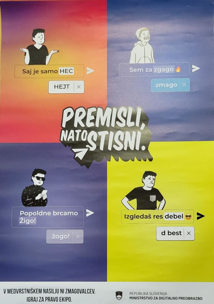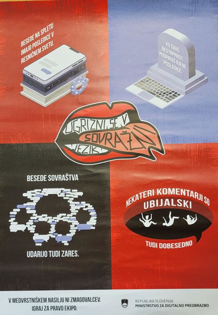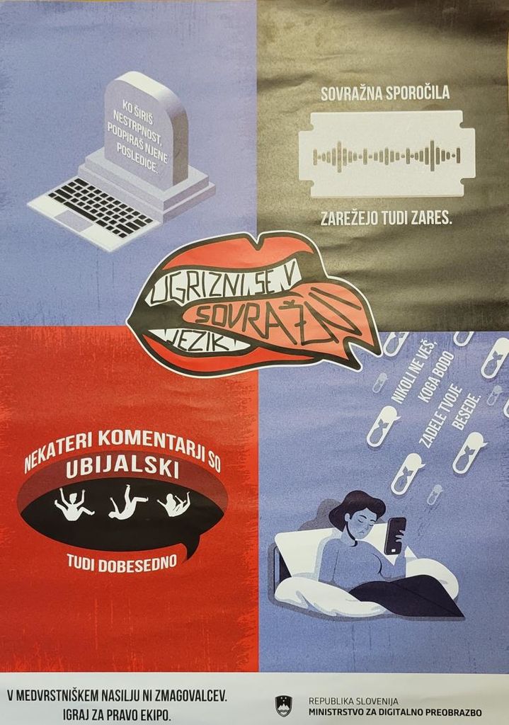 Ministrstvo za digitalno preobrazbo je v kampanji NE SOVRAŽNEMU GOVORU pristopilo k ozaveščanju javnosti tudi s plakati, ki jih je pripravilo, natisnilo in poslalo tudi Občini Bovec, ki z veseljem pristopa k projektu z obveščanjem na svoji spletni strani in KATV Bovške. Osveščanje, izobraževanje in regulacija težko sledita hitremu tehnološkemu razvoju. Ravno zato je v današnjem času bolj kot kadar koli prej pomembno ozaveščati širšo javnost, pri tem pa predvsem mlade, o varnem in odgovornem vedenju na spletu, kako zaščititi sebe in druge, kako se odzvati v primerih spletnega nasilja ter kako vzpostavljati in ohranjati zdrave odnose na spletu. Poleg osveščanja otrok in mladostnikov je pomembno tudi osveščanje staršev in učiteljev.
