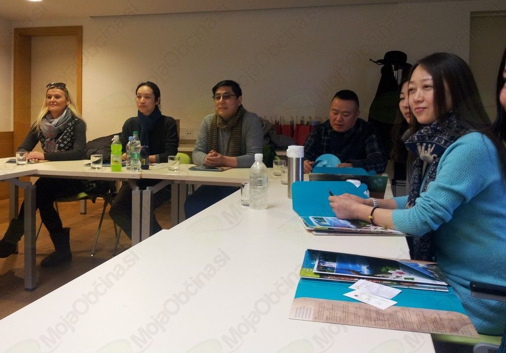 Kitajsko delegacijo je župan Valter Mlekuž s sodelavci in nekaterimi člani komisije sprejel v mali dvorani Stergulčeve hiše, s pomočjo direktorja LTO Bovec, Janka Humarja, pa so bili podrobneje seznanjeni z delom na področju turizma v zadnjih letih ter predvsem z velikim še neizkoriščenim turističnim potencialom, ki ga Bovško ponuja na vseh področjih. Že katalogi s turistično ponudbo so goste nadvse navdušili.