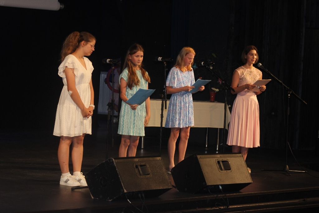 V torek, 24. 6., na predvečer dneva državnosti, so učitelji in učiteljice, mentorji in učenci OŠ Bovec v KD Bovec pripravili proslavo v počastitev državnega praznika, dneva državnosti. Velika dvorana Ite Rine je bila zapolnjena do zadnjega kotička, Mladinski in otroški pevski zbor OŠ Bovec pa sta prireditev začela s slovensko himno. Celoten program je potekal v izvedbi učenk in učencev OŠ Bovec pod budnim očesom in vodenjem njihovih mentoric in mentorjev. Najprej je zbranim pozdravne besede namenila ravnateljica OŠ Bovec Denise Šuler Rutar, ki je s prvimi besedami izzvala močan aplavz, ko je obelodanila, da je OŠ Bovec pridobila naziv Kulturna šola za obdobje 2024 do 2029. V nadaljevanju se je zahvalila vsem sodelavkam in sodelavcem za njihov navdih, spodbujanje in vodenje, seveda pa tudi učenkam in učencem, ki pogumno stopajo na oder, ki ustvarjajo in raziskujejo.