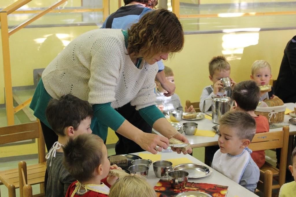 »Obiskali smo lokalnega sirarja, ki nam je pokazal celoten potek proizvodnje ovčjega sira, v vrtcu je zadišalo po domačem kruhu, saj smo ga s skupnimi močmi spekli kar v vrtcu, pripravili smo jabolčno pito in maslo ter izvedli še nekatere aktivnosti za ozaveščanje naših najmlajših. Prav je, da se takole srečamo, tudi zato, da izpostavimo dejstvo, da ni tako samoumevno, da imamo na dosegu rok lokalno, zdravo in odločno hrano. Prav je tudi, da se večkrat zahvalimo pridelovalcem za te dobrote, pa tudi, da znamo ta privilegij izkoristiti,« je poudarila vodja vrtca Mojca Koren Lapajne, dva od vrtčevskih otrok pa s ta vsem zaželela dober tek.