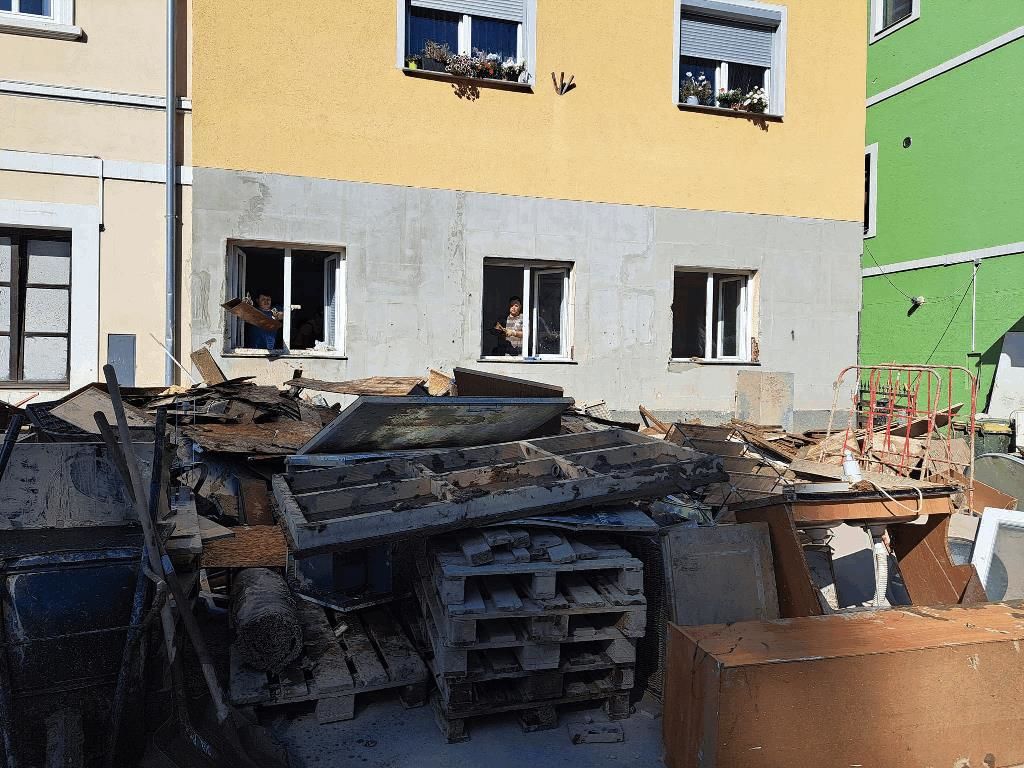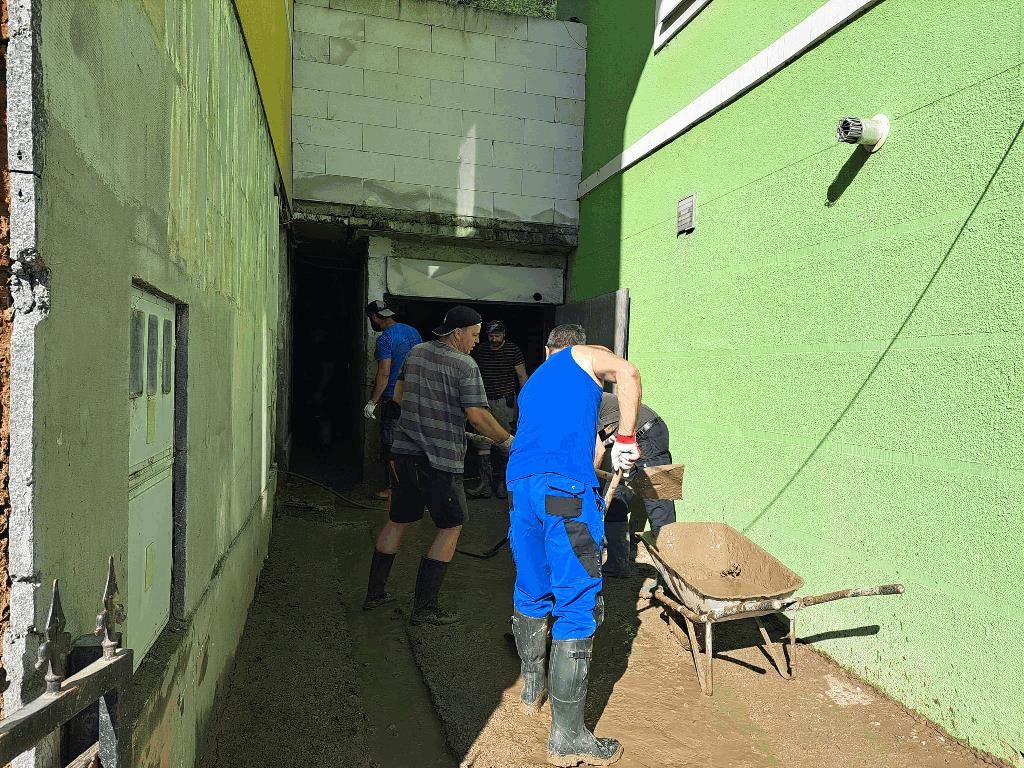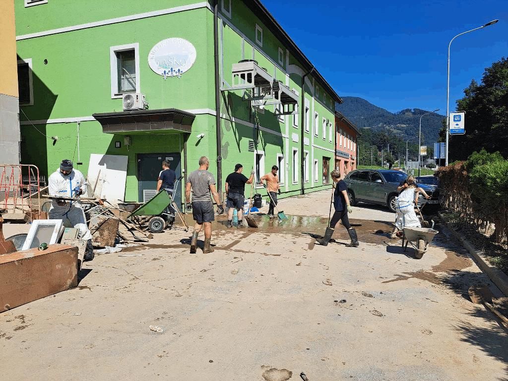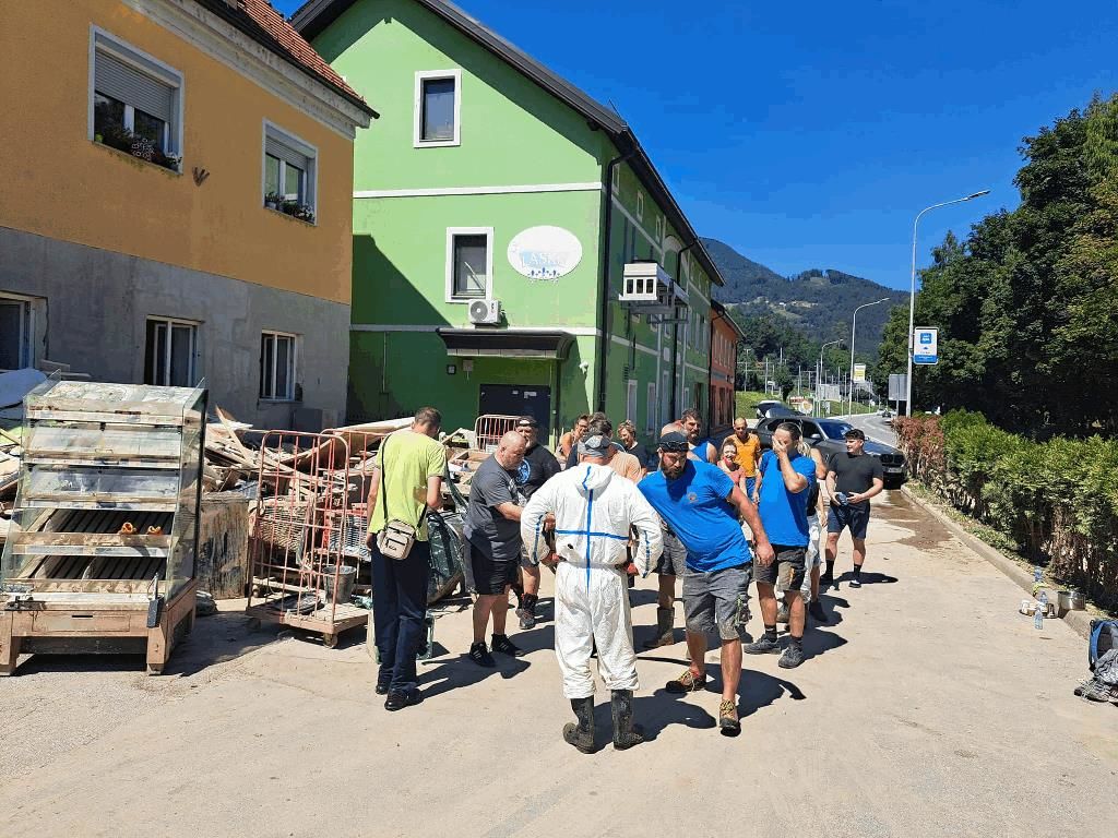 Prosti dan za prostovoljstvo je bila prava priložnost, na pomoč pa so priskočili v Laškem, kjer ji je zalilo pritlično stanovanje. Mitja Miklavič je poklical kolegico policistko, ki je utrpela škodo in v padla je odločitev, da pomagajo njej in prijateljici. Deset fantov se je z dvema voziloma odpravilo na pot. Z nekaj lopatami, krampi, metlami, drugim materialom, ki ga je prispeval Maksim lastnik kampa Liza in karjolo na strehi, pa seveda mesno malico, ki jo je skupaj s posodo avtomobila prispevalo Gostišča Vančar, so odšli v Laško.