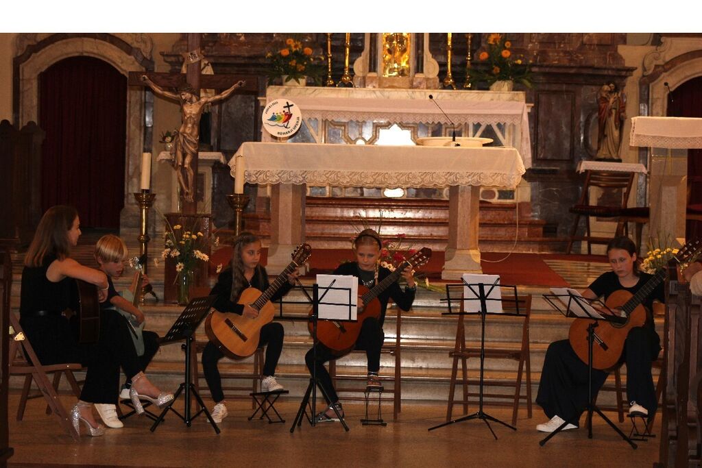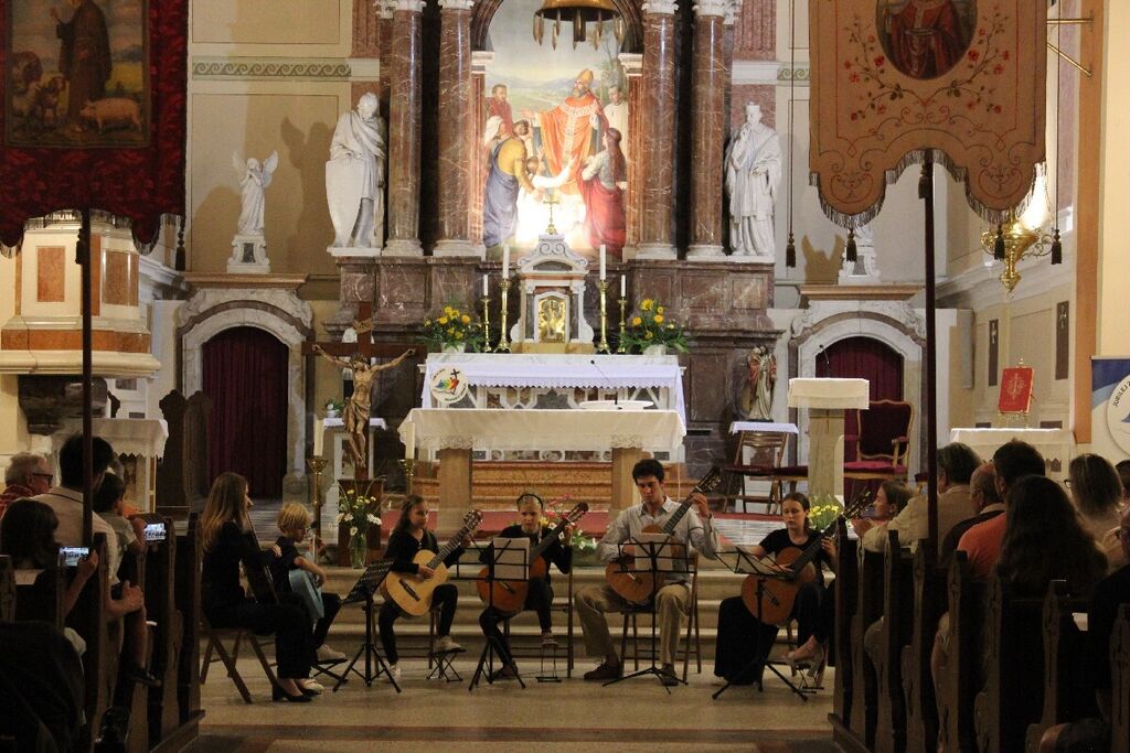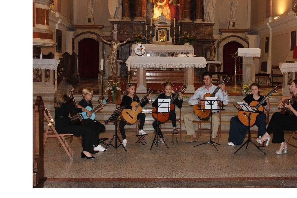 V petek, 8. 8., je cerkev sv. Urha v Bovcu gostila izvrsten zaključni koncert udeležencev MEDNARODNE POLETNE ŠOLE KITARE BOVEC. Prav presenetljivo je bilo slišati in videti, koliko se lahko tudi najmlajši kitaristi naučijo v samo enem tednu. Večer so s tremi skladbami odprli prav najmlajši udeleženci iz Bovca in Kobarida pod vodstvom mentorice, profesorice mag. Doris Ćosić, ki je letos prvič vodila program za najmlajše udeležence z iz Bovca in okolice. Po uvodnem delu so sledili pozdravi in zahvale, prav vsi pa so bili navdušeni nad letošnjim potekom Mednarodne poletne šole kitare Bovec. To so zelo jasno poudarili profesorji dr. Mak Grgić, mag. Jure Cerkovnik, dr. Nejc Kuhar, ki so se zahvalili predvsem OŠ Bovec, dekanu in bovškemu župniku Vilijemu Čušinu, vsem pokroviteljem in med njimi Občini Bovec. Kot je poudaril domačin dr. Mak Grgič, si je vedno želel pripeljati tako šolo tudi na Bovško, in ga zato zelo veseli, da je Mednarodna poletna šola kitare letos že drugič tako dobro uspela. Izrazil pa je željo, da bi to postala res tradicionalna šola kitare, pred katero je na Bovškem še svetla prihodnost z neizmernimi priložnostmi za nadgradnjo in širitev programa. Dekan in bovški župnik Vilijem Čušin je zagotovil, da bosta cerkvi Device Marije v Polju in sv. Urha vedno na voljo, saj je prav, da se vanjo vnese tudi ta del kulturnega udejstvovanja. Kot je dejal, so taki koncerti eden najpomembnejših kulturnih prireditev. Župan Občine Bovec Valter Mlekuž je v svojem nagovoru izrazil hvaležnost, da so se lansko leto odločili za prvo izvedbo v Bovcu, da pa jih je lanskoletna uspešna izvedba prepričala o ponovni izvedbi letos, je pohvala tako za organizatorja kot tudi za gostitelje: