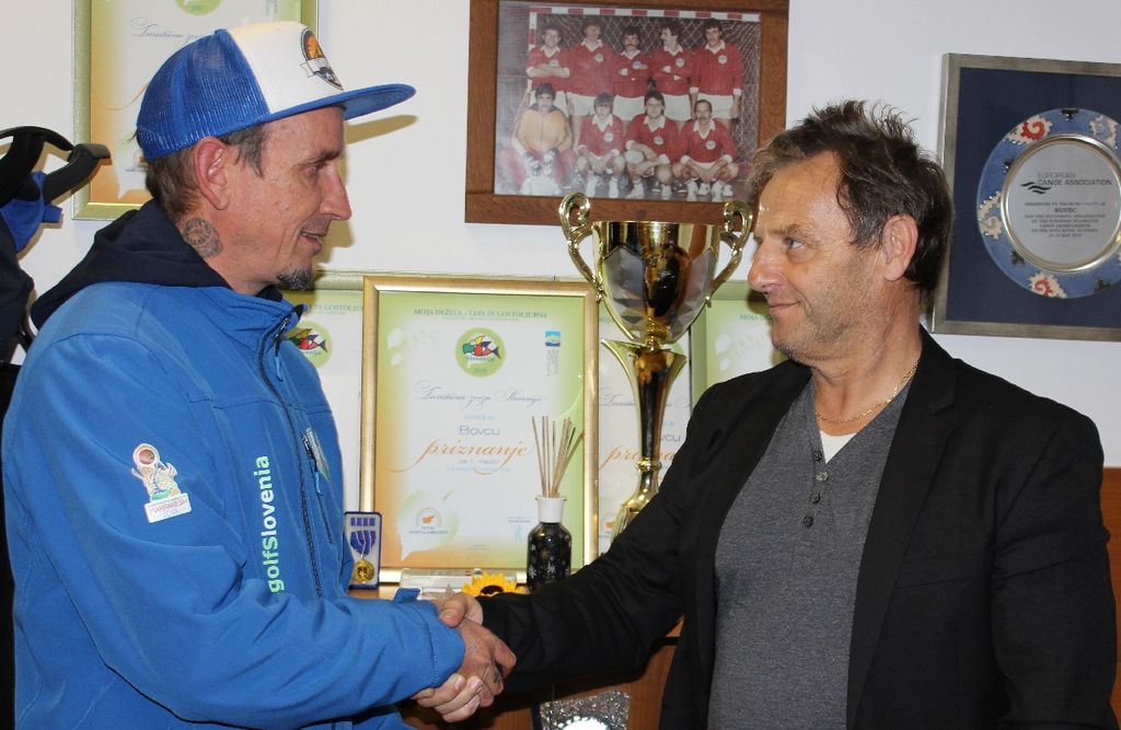 »Taki dosežki si zaslužijo posebno pozornost, zato Vasji Kovaču podeljujem županovo priznanje, znak Občine Bovec. Vasja je pustil močan pečat že v NK Tolmin in pri NK Oplast Kobarid, zdaj pa svojo zgodbo o uspehu nadaljuje v footgolfu. S svojimi dosežki je bistveno pripomogel k prepoznavnosti Bovškega, zato se mu iskreno zahvaljujem in izrekam iskrene pohvale,« je poudaril Mlekuž.