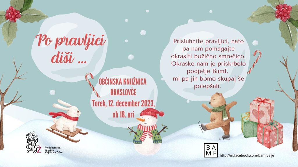 Dobimo se v torek, 12. decembra 2023, ob 18. uri v Občinski knjižnici Braslovče.