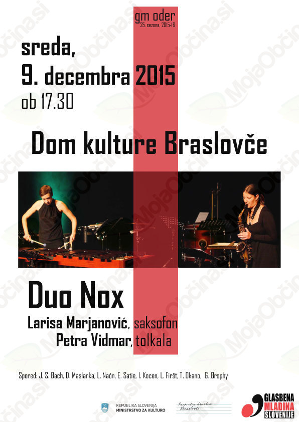 Prosvetno društvo Braslovče v sodelovanju z Glasbeno mladino Slovenije vabi v sredo na koncert Dua Nox.