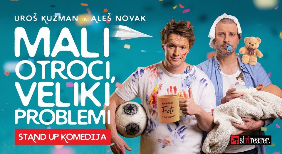 "Mali otroci, mali problemi, veliki otroci, veliki problemi!" je pregovor, ki ga je slišal že vsak starš. Pa je resničen? Je uvertura v starševstvo res preprosta in težavnost tega poklica zraste šele z leti? S temi in podobnimi vprašanji se bosta v stand up predstavi ukvarjala mlada očka, Uroš Kuzman in Aleš Novak, prvi z dvema šoloobveznima pretepačema in drugi s sveže pokakano plenico v rokah. Čigavi problemi so večji? Ne vemo! Vemo pa, da bosta oba vesela priložnosti, da lahko za poldrugo uro smeha pobegneta v vašo družbo. Ker saj veste, kaj pravijo, ko imaš enkrat otroke, je vsak izgovor dober, da greš z doma!