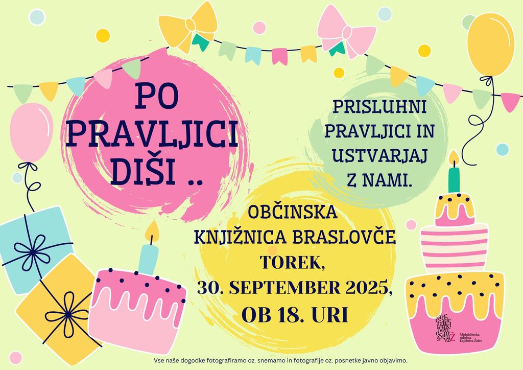 Pridružite se nam v torek, 30. septembra 2025, ob 18. uri v Občinski knjižnici Braslovče. Skupaj si bomo pričarali mini rojstnodnevno praznovanje - z dobrimi zgodbami in zabavnim ustvarjanjem.