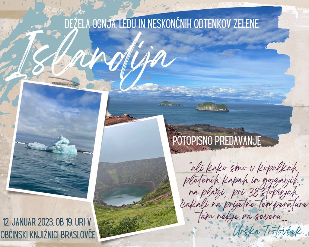 vabimo vas na potopisno predavanje Urške Trotovšek z naslovom Islandija: dežela ognja, ledu in neskončnih odtenkov zelene.