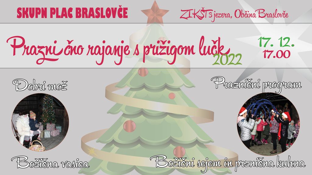 Tudi letošnje leto za vas, pod pokroviteljstvom Občine Braslovče, pripravljamo čudovit družabni popoldan, obdan z lučkami, čarobnostjo prihajajočih praznikov ter radostnim dogajanjem.