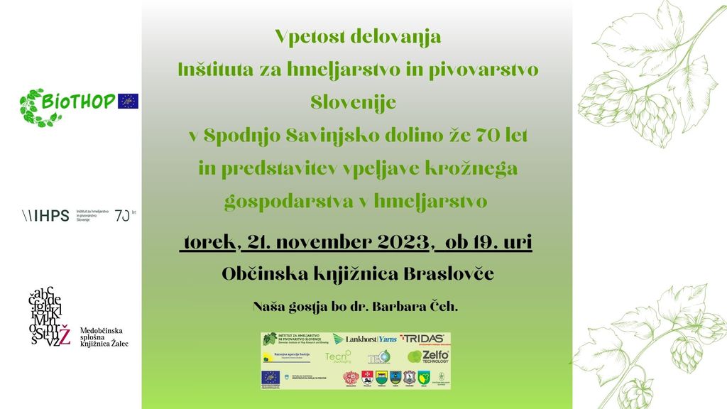 v Spodnjo Savinjsko dolino že 70 let in predstavitev vpeljave krožnega gospodarstva v hmeljarstvo.