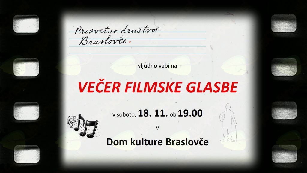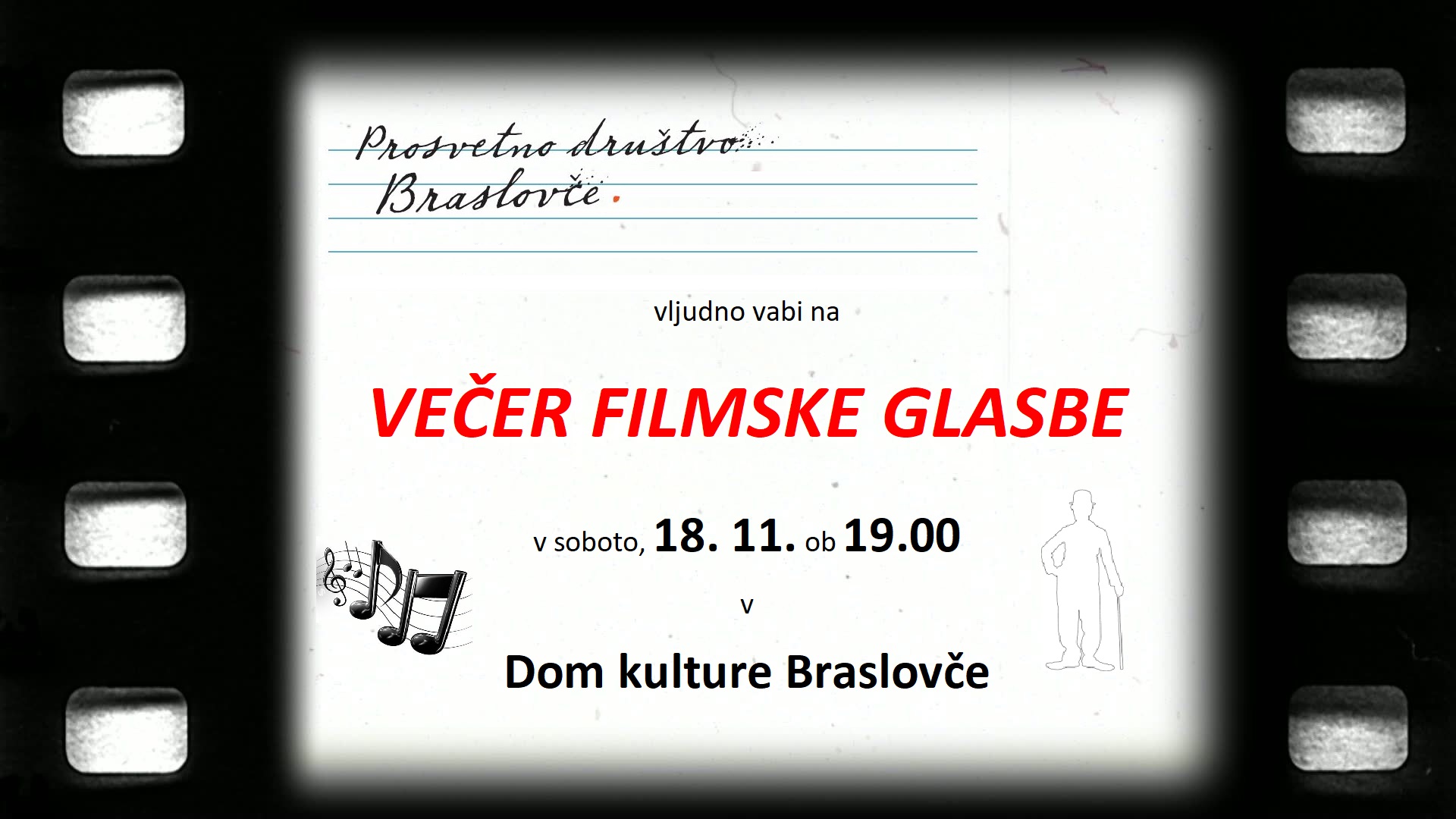 Prosvetno društvo Braslovče vljudno vabi na Večer filmske glasbe, ki bo v soboto, 18. 11. 2017, ob 19.00 v Domu kulture Braslovče.