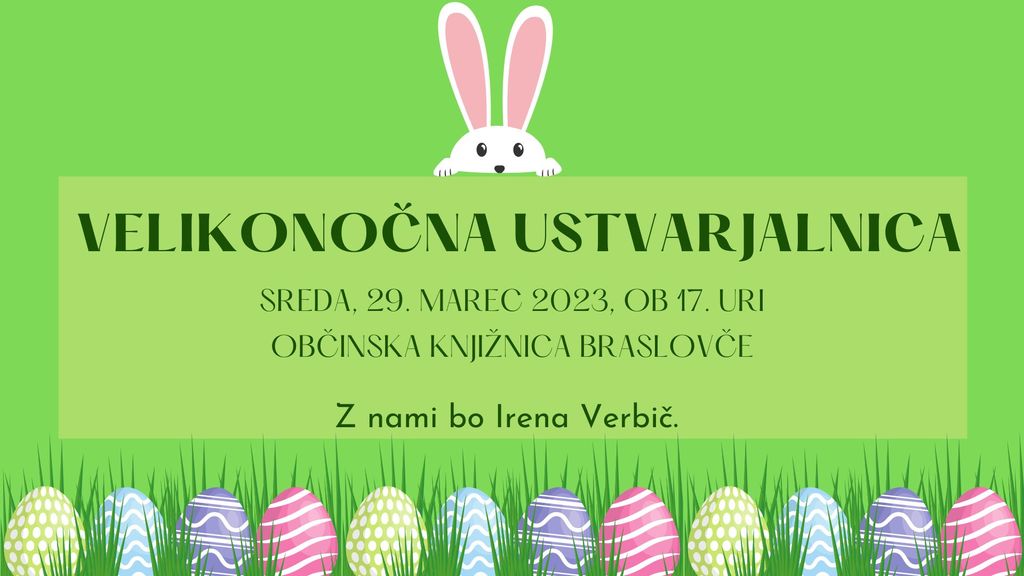 vabljeni, da se nam v sredo, 29. marca, ob 17. uri pridružite na velikonočni ustvarjalnici. Pridružila se nam bo Irena Verbič in z nami delila svoje skrivnosti glede barvanja pirhov.