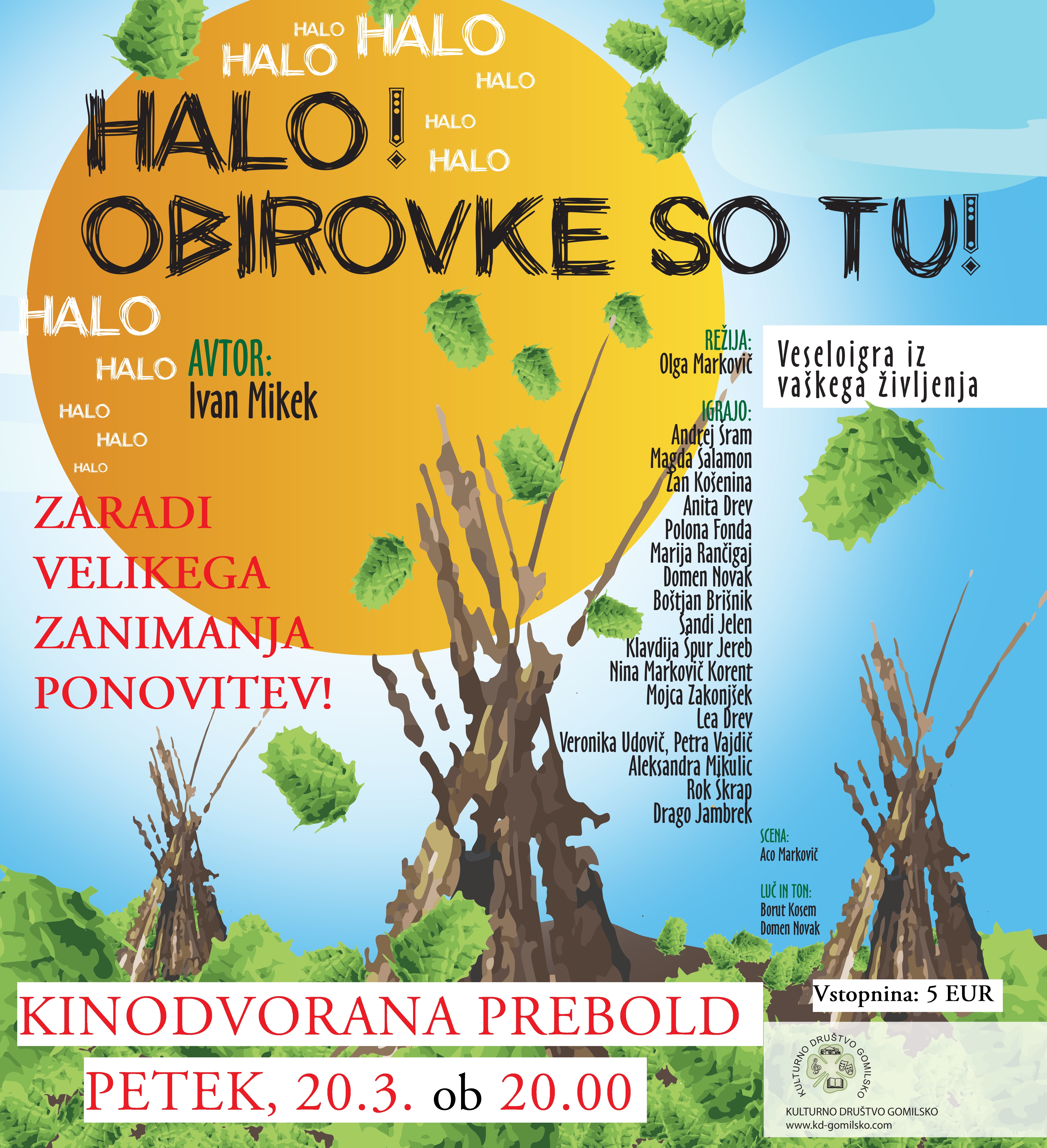 KUD SVOBODA PREBOLD vas zaradi velikega zanimanja ponovno vabi na ogled veseloigre iz vaškega življenja avtorja Ivana Mikeka, v režiji Olge Markovič in izvedbi odrasle gledališke skupine Kulturnega društva Gomilsko