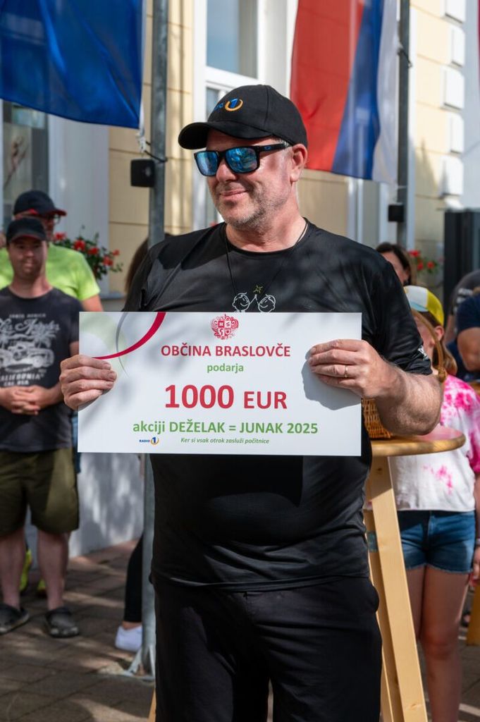 S svojo obširno ekipo in znamenitim kvadrociklom se je v ponedeljek, 2. junija, ustavil tudi pred občinsko stavbo v Braslovčah. Gasilska društva občine Braslovče so mu pripravila osvežilen vodni špalir, ob postanku pa so ga z nasmehi in pozdravi sprejeli številni občani. Za popestritev programa so poskrbele plesalke s Tinkaro Fortuna, ki je predstavila tudi svojo novo pesem Počitnice. Nekaj besed je prisotnim namenil župan Občine Braslovče, Tomaž Žohar, in ob tem Deželaku Junaku predal donacijo v vrednosti 1000 €. V imenu vseh 7 gasilskih društev v občini Braslovče je v sklad za počitnice otrok daroval tudi poveljnik GPO Braslovče Miloš Dernač, donirali so tudi občani.
