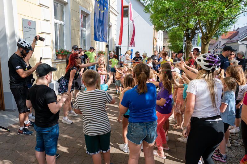 Miha Deželak je v spremstvu ekipe Radia 1 nato s Tinkaro Fortuna odkolesaril naprej proti Polzeli, spremljali pa so ga tudi številni domači kolesarji.