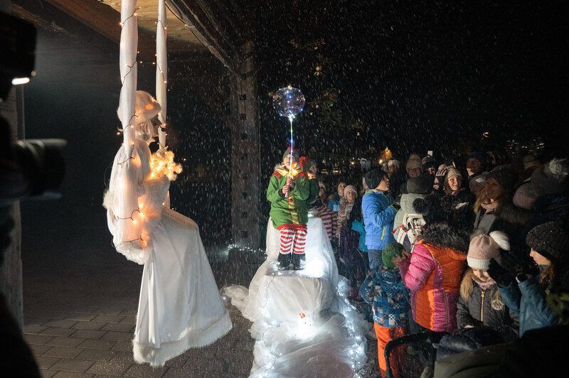 Po prižigu prve adventne sveče in praznične razsvetljave so obiskovalci z baklami luč ponesli do nadaljevanja programa na Skup´n plac. Z zgodbo o igri in igrivosti ter čarobnem drevesu je snežna vila Iskra (Jasmina Roter Jager) v družbi škratov Živka in Zvončice (Eva in Vid Stepišnik) in ob glasbeni spremljavi Tije Pšaker med ljudi ponesla letošnje osrednje sporočilo, ob tem pa so zasvetile praznične luči tudi na prireditvenem prostoru. Z neba so letele čisto prave snežinke, v obliki ognjemeta pa se je na nebu tudi zaiskrilo. V nadaljevanju so s simpatičnim programom učenci Osnovne šole Braslovče pod mentorstvom Martine Loren otvorili sezono drsanja. Po nagovoru je župan Občine Braslovče Tomaž Žohar slovesno odprl vrata drsališča v družbi predsednika Turističnega društva Braslovče, Branka Ribizla. Na kozolcu pa so se odprla vrata Božičkove pisarne, kjer so otroci v družbi vile (Katja Strojanšek) lahko ustvarjali pisma za čisto pravega Božička in ga slovesno oddali v Božičkov nabiralnik, ki bo odprt vse do 14. decembra v času odprta drsališča. Praznično dogajanje je po uradnem delu popestrila Tija Pšaker ob glasbeni spremljavi Petra Steblovnika, Turistično društvo Braslovče, ki bo tudi v prihodnjih tednih skrbelo za drsališče, izposojo drsalk in kulinarično ponudbo, pa je poskrbelo za toplo okrepčilo in okusne palačinke.