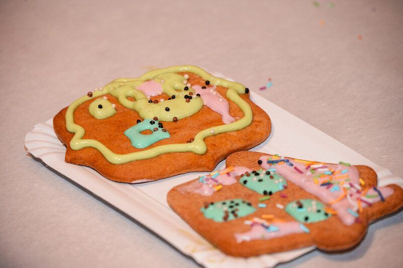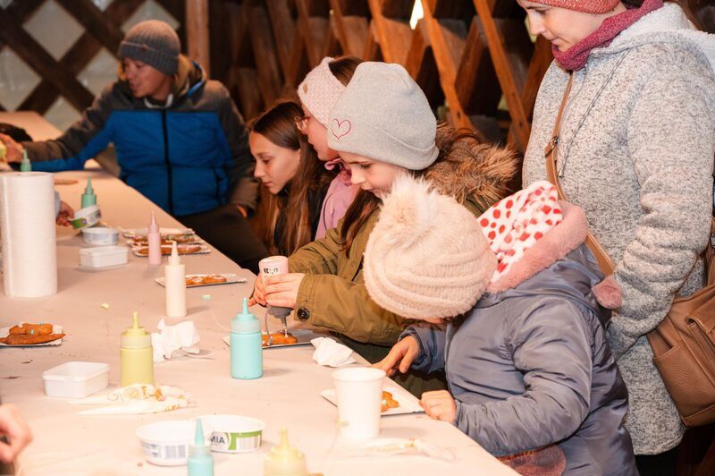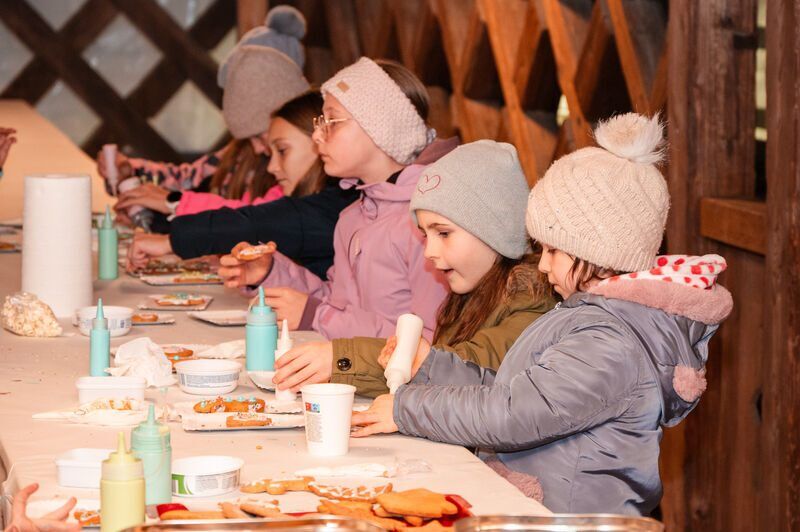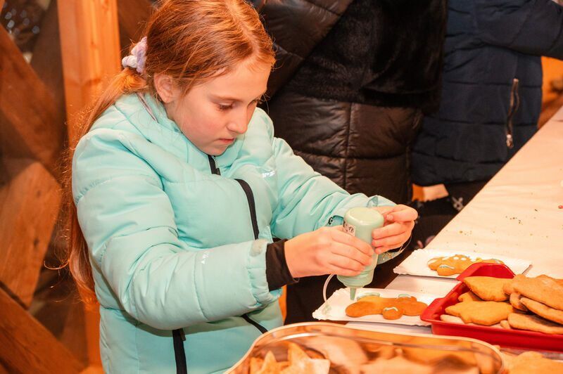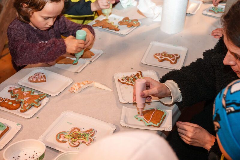V Božičkovi pisarni, ki bo na kozolcu na Skupnem placu v Braslovčah odprta vse do 14. decembra, je bilo tudi v nedeljo, 7. 12., zelo živahno. Številni obiskovalci so se udeležili delavnice krašenja medenjakov, ki sta jo pripravila Občina Braslovče in Društvo podeželskih žena Braslovče.