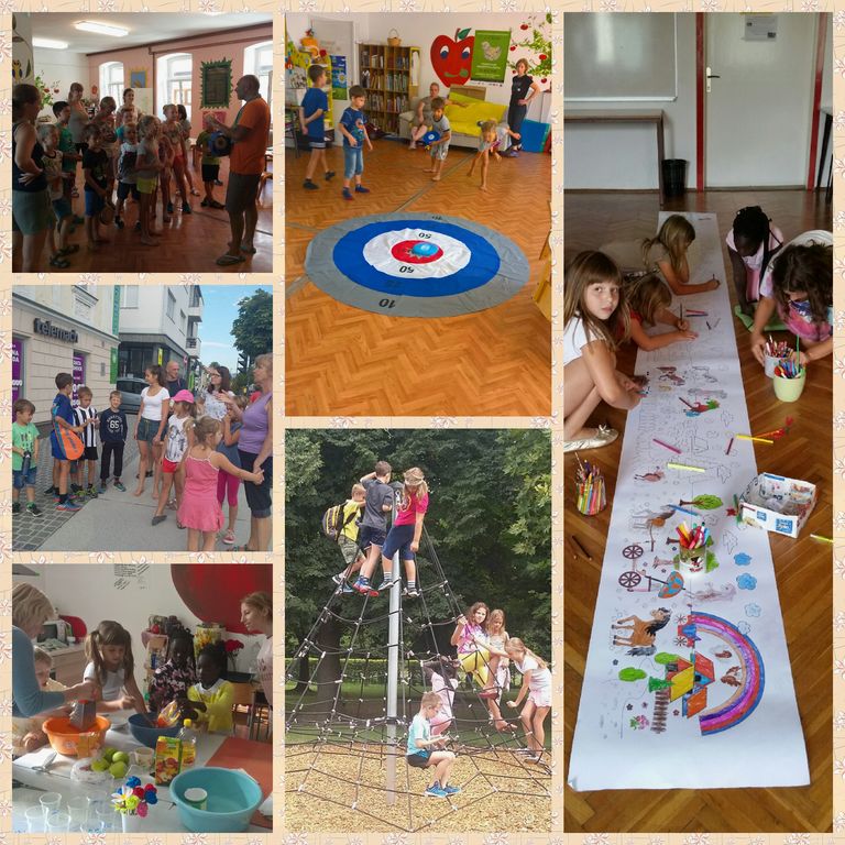Da otrokom ni bilo dolgčas, smo poskrbeli predstavniki Hiše in naši številni prostovoljci. Pripravili smo različne ustvarjalne delavnice. Z Andrejo Kotnik iz trgovine unikatnih izdelkov Kopos smo izdelovali zapestnice, z našo prostovoljko Evo Zupanc ribice iz papirja in lovilce sanj, z Martino Felicijan smo izdelovali čudovite rožice iz papirja, s Keiko Miyazaki smo spoznavali origami, počeli pa smo še marsikaj zanimivega. Risali smo stripe, barvali pobarvanke, otroci so se razgibali med gibalnimi igrami, takrat, ko nam je to dopuščalo vreme, pa smo se v dopoldanskem času zabavali med igro na žalskih igriščih. Še nogomet smo zaigrali. Skupaj smo plesali z Evo in s prostovoljkama Majo Knapič ter Zalo Božanič, trenirali smo tai chi z Dragico Kulić in se preizkusili celo v meditaciji s Tomažem Miheličem. Poslušali smo pravljice, igrali različne družabne igre in spoznavali številne kulture – indijansko, indijsko, japonsko… Nekajkrat smo spekli pecivo, pravi hit pa je bila pica, ki je bila na jedilniku tedensko in so si jo otroci lahko pripravili sami.