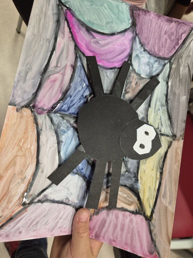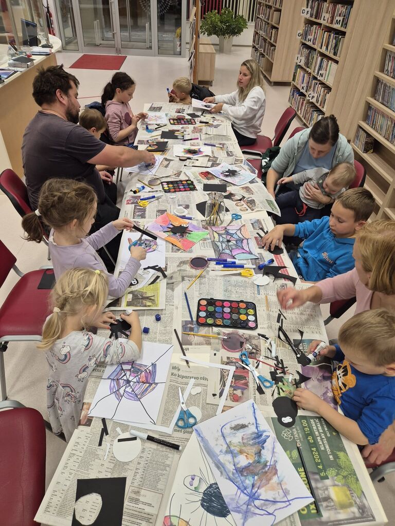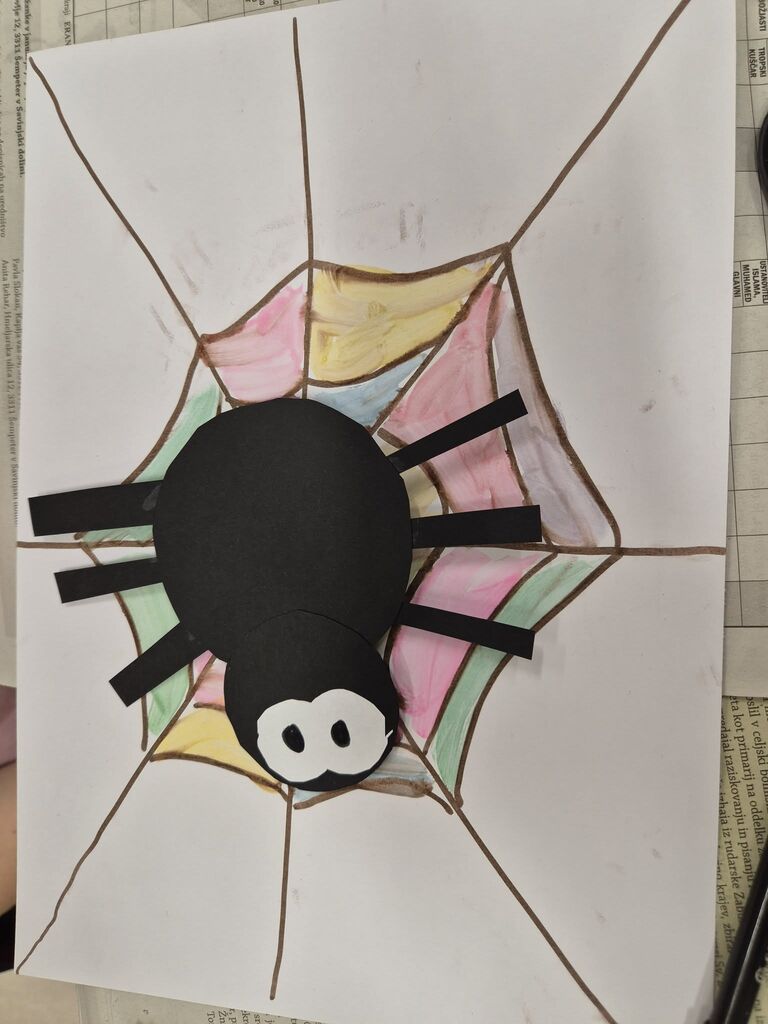 Naše druženje smo sklenili ob prijetnem ustvarjanju. Najprej smo narisali in pobarvali raznovrstne pajkove mreže, da pa te niso ostale prazne, smo dodali še migajoče pajkce.