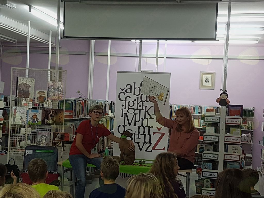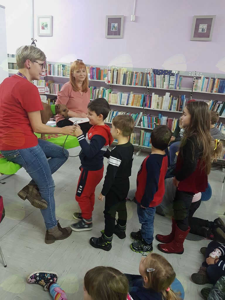 V novembru je na desetine otrok s starši v žalski knjižnici doživelo prav posebno pravljično uro. Iz Zavoda za terapijo s pomočjo psov PET sta prišli psička Aurika in njena vodnica Helena. Prek zgodbice o psičku Oskarju so otroci spoznali, kaj vse bi psi radi, da vemo o njih. Največkrat menimo, da ravnamo prav, a se izkaže, da smo v zmoti. Gospa Helena je povedala, kako sicer skrbi zanjo. Otroci so sami opravili del Aurikine dnevne nege od hranjenja, umivanja zobkov, pobiranja kakcev (malo prirejenih), čohanja, gladenja, poslušali so, kako ji utripa srček. Psička je bila ves čas strpna, trpežna in izredno sodelujoča. Na koncu je bila nagrajena; zapeli smo ji pesmico Kuža pazi.