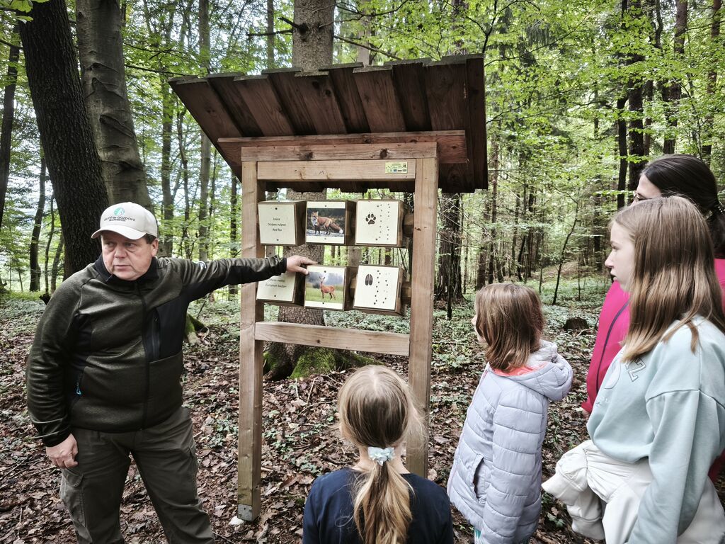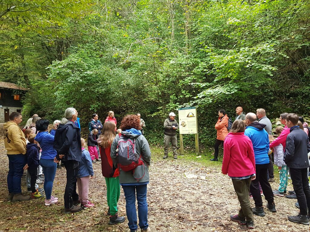 Tako smo sodelujoče družine v soboto, 27. septembra 2025, povabili na zaključni izlet. Zbrali smo se na parkirišču pred Jamo Pekel, kjer nas je najprej sprejel gozdar s katerim smo odšli na skoraj 2 km dolgo gozdno učno pot, ki se nahaja v krajinskem parku Ponikovski kras. Na učni poti nam je gozdar skozi 10 informacijskih točk predstavil odnose v gozdu in naravi, različne vloge gozdov, gozdne ptice in živali, življenje dreves, gozdna tla, vpliv škodljivcev, predvsem podlubnikov (najbolj znana vrsta je smrekov lubadar), kjer nam je pokazal na kakšen način zatiramo te škodljivce. Zatiramo jih z lovljenjem v posebne pasti. V njej so vrečke s feromoni, ki privabijo lubadarje. Predstavil nam je tudi vpliv ujm na gozdove ter kras s kraškimi pojavi.