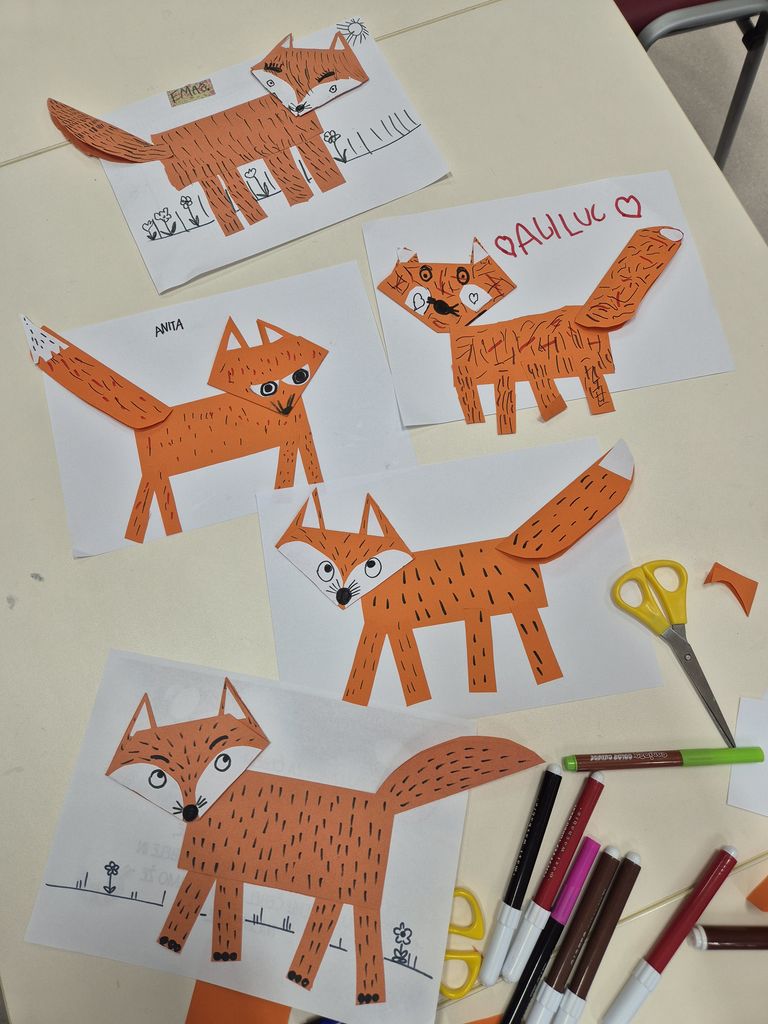 Druženje smo sklenili z ustvarjanjem. Malo papirja, lepila, škarje in črn flomaster, pa so pred nami zaživele navihane lisičke, ki so jih zadovoljni otroci s ponosom odnesli domov.