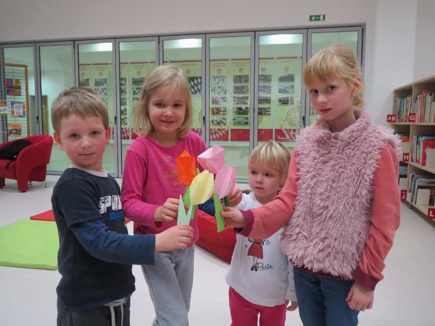 Valentinova pravljica je bila drugačna. Drugače je zvenela. Gaji in Aneju prijetno domače. Vsem preostalim prijetno lepo. Prebral jo je tati. Tati dveh malih škratov. Rok Škrap se je namreč odločil, da bo pravljično uro pripravil za vse nas. Prebral nam je pravljico o nemarnem in umazanem kužku Pacu. Paco vedno zabrede v težave. Tudi tokrat je. Godrnjaje in ječaje. Prhal je in vohljal. Prvi dan. Drugi dan. Tudi tretji in četrti dan. Nato je povesil glavo in ušesa. Začel je zavijati in stokati. Opazil je Lili. Psičko Lili. Paco se je zaljubil. In ker smo tudi mi zaljubljeni, smo za naše Valentinčke izdelali nekaj lepega. Tokrat so naše spretne roke, male in velike, zgibale papir. Zelen za steblo. Rumen, oranžen, rožnat in rdeč za cvet. Gib za gibom. Kot pravi origami. Vse do popolnega tulipana. Izdelali smo jih. Vsak svojega. Ponosno so zacveteli in čisto po tiho, plašno ter na skrivaj šepetali, da pomlad ni več tako zelo daleč.