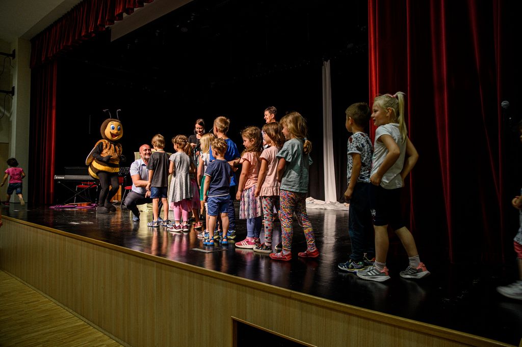 Kot zadnji je na oder stopil Tomaž Žohar, župan Občine Braslovče. Besede, ki jih je namenil svojim mladim občanom, so bile polne zanosa in ponosa. Ponosni pa so bili tudi mali bralci, ki so s široko odprtimi očmi zrli na veliki oder, kamor so bili povabljeni, da je vsak izmed njih v znak priznanja prejel medaljo. Župan jih je skupaj z Lauro Jelen iz Občinske knjižnice Braslovče osebno izročil vsakemu posebej. Iskren stisk roke in topel pogled, ki ga je bil deležen vsak izmed njih, je prižgal ogenj ponosa v mladih srcih, ki bijejo za našo skupno prihodnost. Od nekje daleč je kot presenečenje priletela še velika, prikupna čebela. Prav nihče se je ni bal. Tako mehka in nagajiva je bila. Bralne medalje, prav tako z znakom čebele kot zaščitni znak projekta »Čebela BERE med«, pa so njihovo veselje in navdušenje ponesle daleč naokrog.