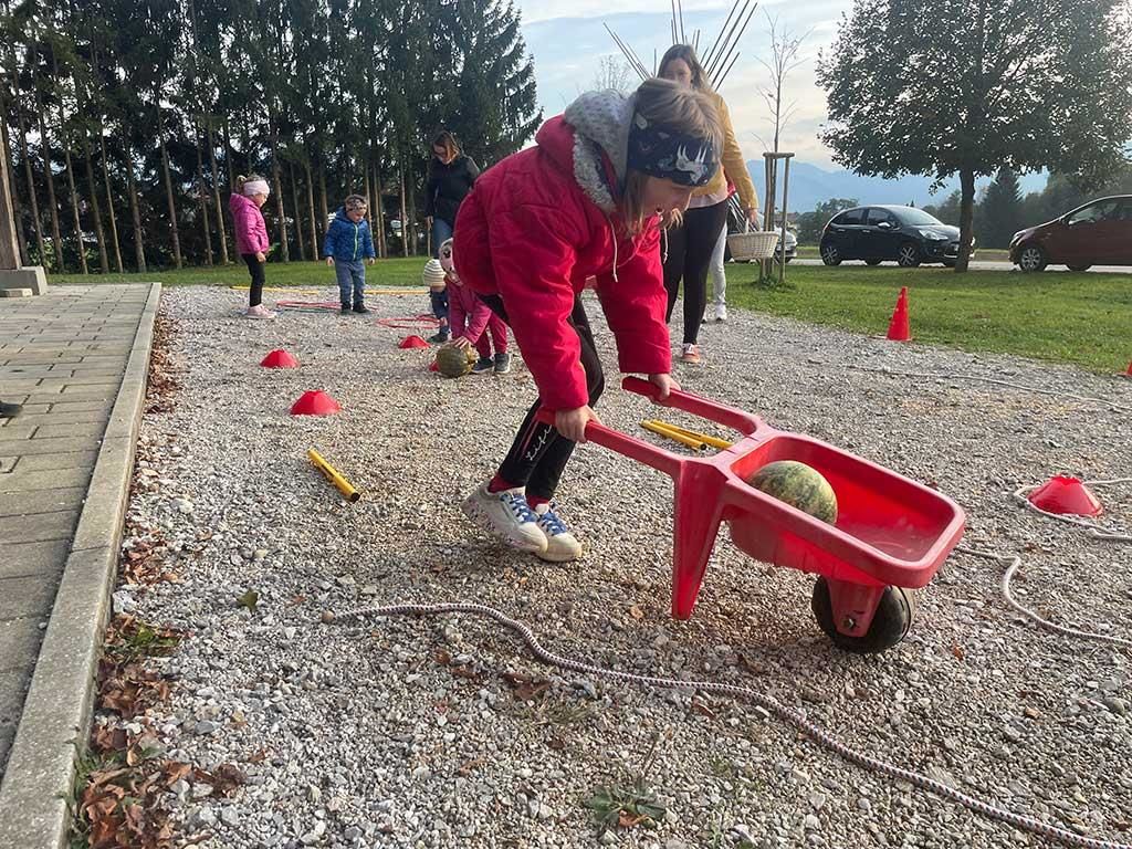 Na torkovo popoldne smo se strokovne delavke vrtca, otroci in njihovi starši zbrali na veseličnem prostoru v Braslovčah. Ob druženju smo poskrbeli za gibalne in ustvarjalne dejavnosti, ni manjkalo glasbe in rajanja, pa tudi posladkali smo se s slastnimi palačinkami. Obiskala nas je tudi Tetka Jesen. V tako veselem jesenskem popoldnevu, smo se greli s toplim čajem in seveda – s sveže pečenim kostanjem, katerega so pripravljali starši in stari starši otrok.