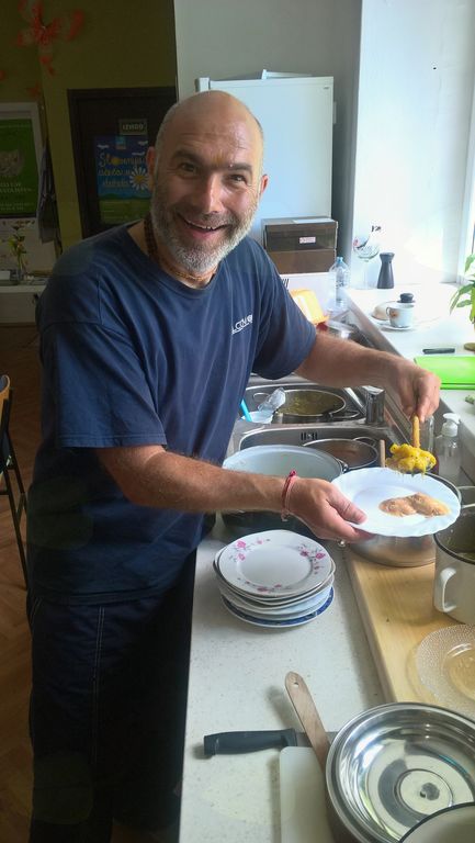 Skupaj smo pripravili indijsko paradižnikovo juho. Pa Sabdji, glavno zelenjavno jed iz paprike, paradižnika, korenja, cvetače, krompirja, graha in indijskih začimb, ki jo je Egon postregel skupaj z basmatim rižem. Na koncu, pa smo si privoščili kar dve sladici. Višnu murti, sladico iz prečiščenega masla – Ghi, z navadno in kokosovo moko ter mletim sladkorjem. Po izgledu je še najbolj spominjala na maso iz piškotov. Naš kuhar pa jo je postregel skupaj z rahlo pekočo sladico Čatni, s čilijem in bananami.