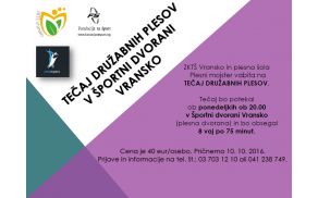 Tečaj bo potekal ob ponedeljkih ob 20.00 v Športni dvorani Vransko (plesna dvorana) in bo obsegal