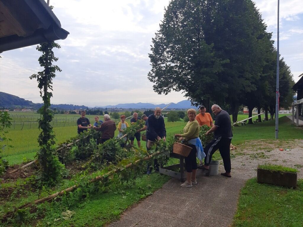 Ob robu Skupnega placa so predzadnjo avgustovsko soboto ročno obirali hmelj. Štangar je ruval hmeljevke, obiralci so jih položili na križ in pripravili za obiranje. V pletene košare, privezane okrog pasu, so izpod spretnih prstov padale hmeljske kobule – zreli storžki (žensko socvetje). Kobule z značilnim aromatičnim vonjem, obarvane v rumeno barvo lupulina, so bile letos še posebej velike in čvrste. Ko je bil hmelj obran, je sledilo merjenje nabrane količine. Člani Turističnega društva Braslovče, ki obdelujejo mini hmeljišče, so z letino zadovoljni, saj je bila večja kot lani. Veselo je bilo pri obiranju, še več smeha pa na likofu.