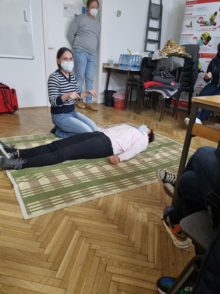 Do konca februarja bodo licencirani predavatelji RKS v Žalcu usposobili 21 novih bolničarjev, ki bodo prostovoljno sodelovali z RKS – OZ Mozirje, Šentjur, Slovenske Konjice, Šmarje pri Jelšah in Žalec. 45-urno usposabljanje zajema 17 ur predavanj in 28 ur vaj: kandidati so že seznanjeni z ustrojem in delovanjem človeškega telesa ob dajanju prve pomoči, prepoznajo naloge in aktivnosti ter delujejo v skladu s cilji, moralnimi in pravnimi vidiki dajanja prve pomoči, kdaj uporabljati telefonsko številko 112 in vzpostaviti dobro medsebojno sodelovanje s člani enot prve pomoči, varno in pravilno pristopati k poškodovani in ali nenadno oboleli osebi, varno prenašati nenadno obolele ali poškodovane, uporabljati opremo člana in ekipe prve pomoči ob naravnih in drugih nesrečah, znati izvajati temeljne postopke oživljanja pri dojenčku, otroku in odraslem z uporabo AED ter izvajati ukrepe pri zapori dihalne poti s tujkom.