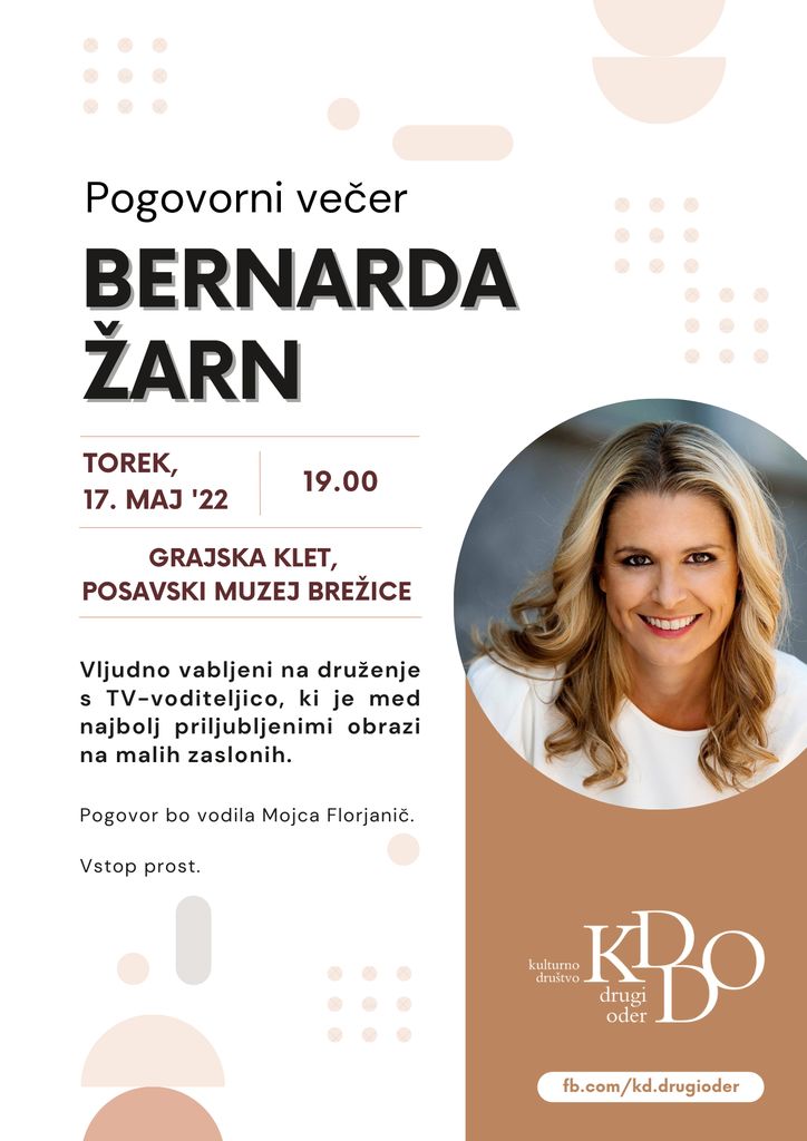 vabljeni na pogovorni večer z Bernardo Žarn, eno izmed najbolj