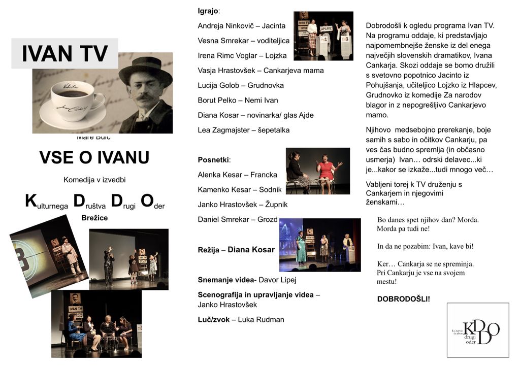 Kulturno društvo Drugi oder vas prisrčno vabi na zabavno gledališko predstavo Vse o Ivanu, ki bo v sredo, 16. aprila 2025, ob 18.00 v KS Dobova.