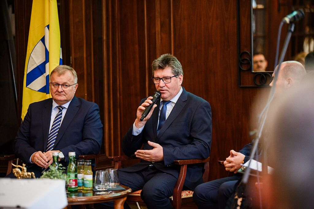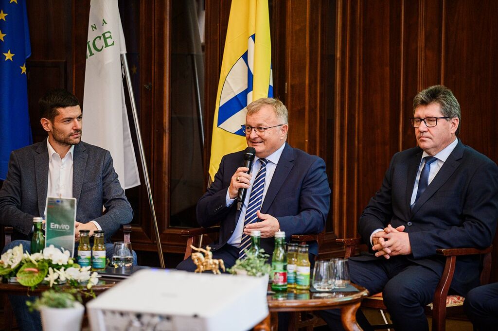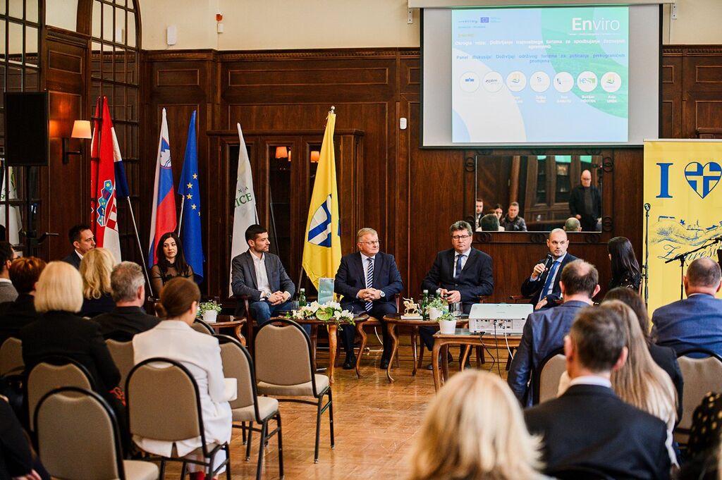 Zbrane goste, predstavnike medijev in projektne partnerje, katerega ocenjena vrednost skupnih stroškov presega milijon in pol, je v imenu Občine Brežice, kot vodilnega partnerja, pozdravil župan Ivan Molan. Župan je izrazil zadovoljstvo in pohvalil dosedanje sodelovanje z mesto Zaprešič ter poudaril: ''Čezmejno sodelovanje pri projektu ENVIRO je priložnost za razvoj za obmejne občine, kot je naša občina Brežice. Takšno sodelovanje prispeva tudi k dobrim med sosedskim in prijateljskim odnosom med ljudmi, ki živimo na obeh straneh meje. Seveda je to tudi priložnost za izboljšanje kakovosti življenja v obmejnih krajih. Veseli me, da smo združili moči tako podjetja, društva, zavodi kot občine in skupaj pripravili izjemno kakovosten projekt, ki je v skladu z razvojno strategijo naše občine kot zelene in trajnostne lokalne skupnosti, prijetne za življenje in delo. ENVIRO projekt sovpada z našo vizijo turizma in energetske samooskrbe. Projekt je odlična priložnost, da bomo obnovili objekt kulturne dediščine in ga naredili dostopnega za javnost, še pomembneje pa je, da ga bomo napolnili z vsebinami, saj z uporabo najlažje ohranimo našo dediščino. Hvala vsem, ki ste sodelovali pri projektu, ki bo prispeval k temu, da bo naše okolje bolj prijetno in kakovostno, saj bo izobraževalni center mlade poučeval o okolju, trajnosti in energetiki oz. o simbiozi obnovljivih virov energije, ohranjanja okolja in trajnostnega turizma.''