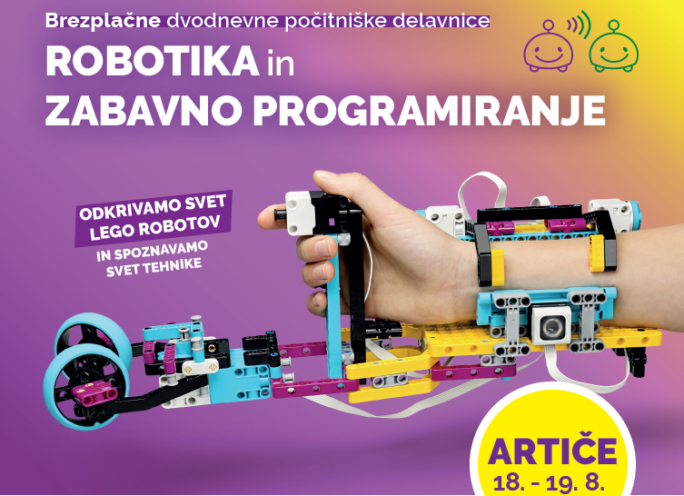 Razvojni center Novo mesto bo za osnovnošolce izvajal kreativne in zabavne delavnice robotike ter programiranja, kjer bodo otroci skozi igro spoznavali LEGO robotiko, osvojili osnove bontona ter varne uporabe interneta. Brezplačni počitniški dvodnevni delavnici se bosta odvijali na OŠ Artiče, in sicer 18. in 19. 8.. Več informacij in prijave: Zunanja povezava na Brezplačna delavnica robotike za otroke