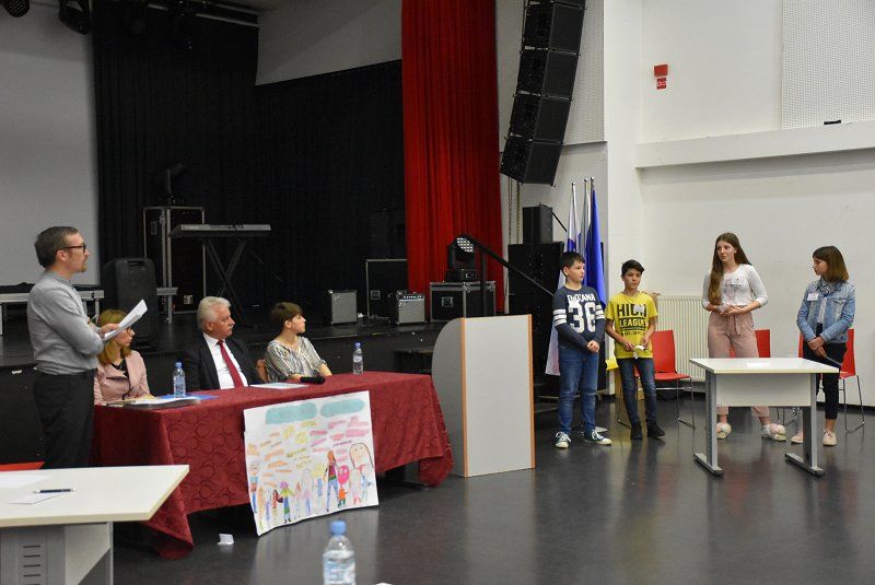 Mlade parlamentarca sta pred predstavitvami kandidatk in kandidatov za uvrstitev na nacionalni otroški parlament pozdravila in nagovorila predsednik Zveze prijateljev mladine Krško Vinko Hostar in v imenu Občine Brežice namestnica vodje Kabineta župana Jasmina Molan.