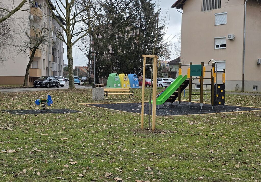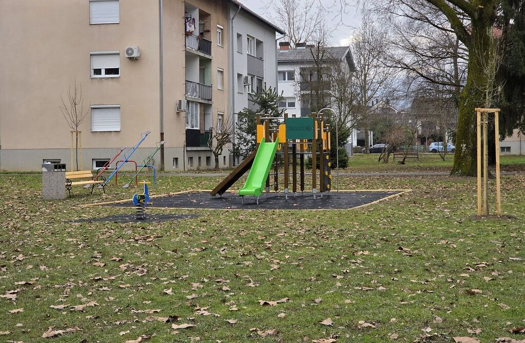 Zelena ureditev parka je bila dopolnjena z novim otroškim igralom ter z namestitvijo novih klopi in miz, umeščenih v zeleni prostor in namenjenih počitku, druženju ter kakovostnemu preživljanju prostega časa na prostem. Na območju parka je poleg zelenih površin urejeno tudi športno igrišče.