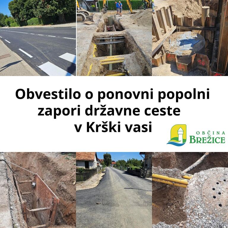 Obveščamo vas o popolni zapori državne ceste R2-419/1206 Krška vas–Čatež, ki je potrebna zaradi izvajanja ureditev kanalizacijskega omrežja na območju Krške vasi.
