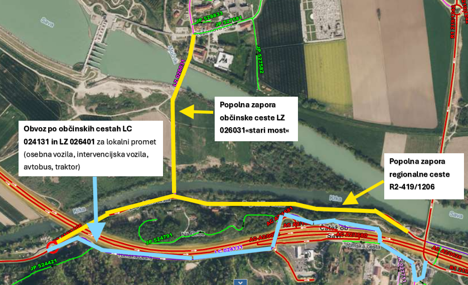 Popolna zapora je predvidena v obdobju od 2. februarja 2026 do 6. marca 2026. Naročnik zapore je podjetje CGP d.d.