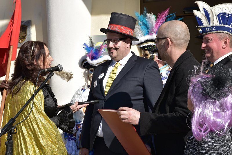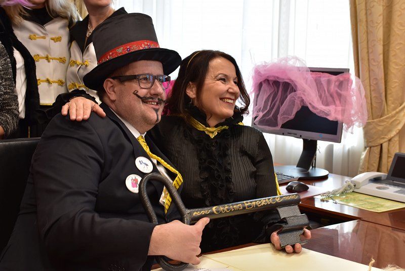 Prevzem oblasti v Brežicah izpeljala novi Fašjenkov župan Srečko in proračunska kraljica