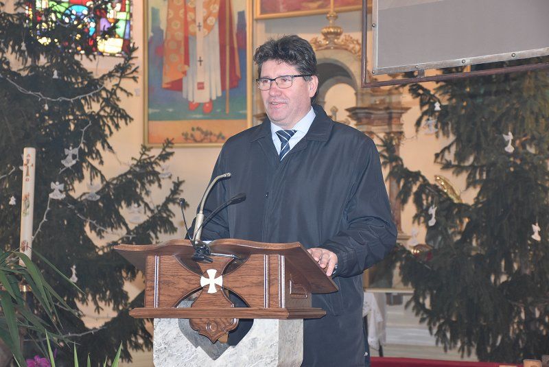 Na fotografiji od leve proti desni: Jože Pacek (župnija Čatež ob Savi), msgr. France Novak (Sv. Križ – Podbočje), dekan msgr. Anton Trpin (dekanija Leskovec), župan Ivan Molan, dekan Roman Travar (dekanija Videm ob Savi, župniji Artiče in Sromlje), Milan Kšela (župnija Brežice), naddekan Jože Špes (Savski dekanat), Gregor Majcen (župnija Pišece), mag. Janez Žakelj (župnija Cerklje ob Krki), direktorica občinske uprave Irena Rudman in podžupanja Katja Čanžar.