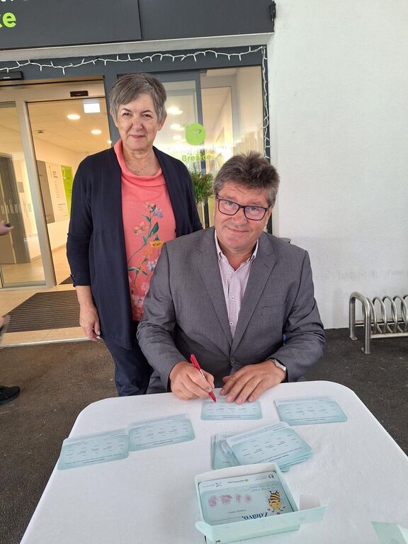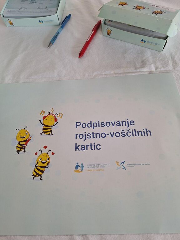 Župan Ivan Molan je pozdravil sodelujoče na dnevu odprtih vrat in sodeloval pri podpisovanju rojstno-voščilnih kartic. Zveza organizacij pacientov Slovenije je namreč ob letošnjem dnevu začela zbiranje posvetil in podpisov na 16.875 rojstno-voščilnih kartic. Kartice s posvetili otrok iz vrtcev in šol ter varovancev domov starejših občanov in s podpisi zdravstvenih delavcev, društev pacientov in znanih Slovencev bodo babice porodničarke od danes izročale mamicam novorojenčkov v 14 slovenskih porodnišnicah, prejele jih bodo tudi mamice v brežiški porodnišnici. Podpisovanju rojstno-voščilnih kartic se je v Brežicah z veseljem pridružila tudi domačinka in odlična slovenska pevka Nuša Derenda.