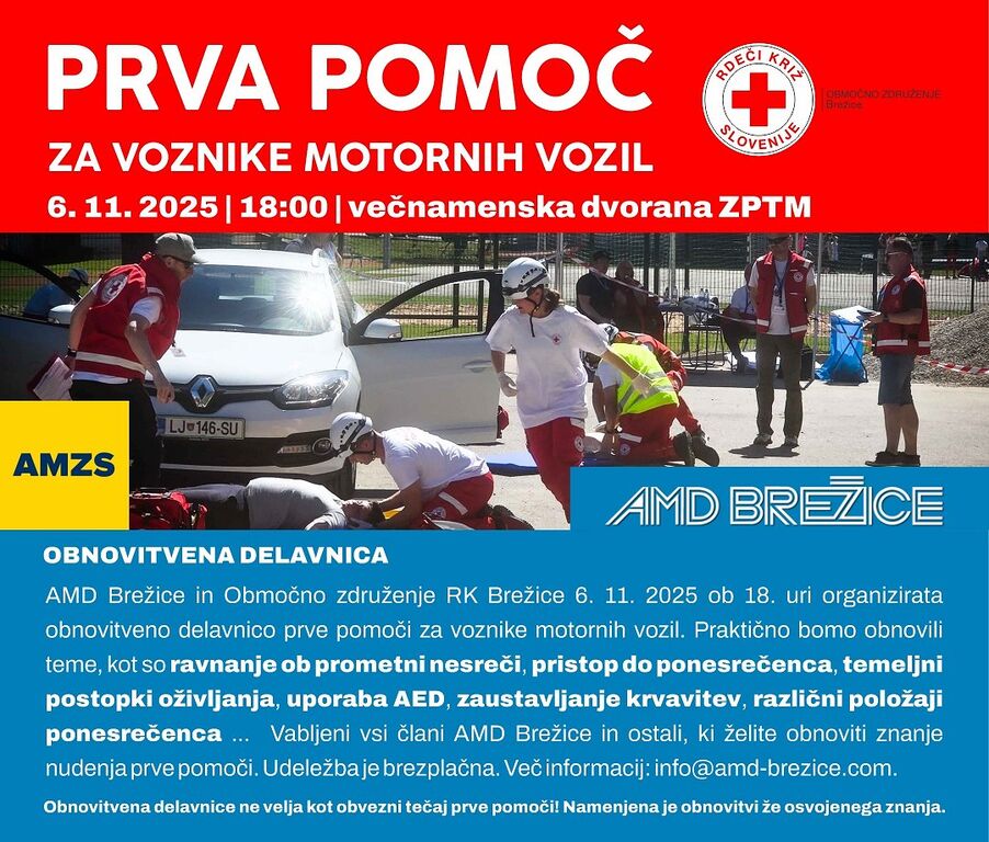 AMD Brežice in Območno združenje RK Brežice vabita na obnovitveno delavnico prve pomoči za voznike motornih vozil.