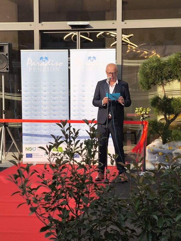 Župan je direktorju podjetja Terme Paradiso Marjanu Cvetkoviču čestital za pomembno pridobitev z željo, da nadaljuje uspešno pot podjetja. Novo pridobitev je blagoslovil brežiški župnik Ivan Šumljak, sledila je simbolična predaja penziona v namen z rezanjem traku. Zgodba Paradisa se je začela leta 1986 z odprtjem prve zasebne picerije, danes pa je bil namenu predan sodoben in energetsko napreden Penzion Paradiso. Objekt, ki združuje tradicijo in prihodnost, je energetsko pozitiven, kar pomeni, da proizvede več energije, kot je potrebuje. Skoraj polovica materialov, ki so uporabljeni za objekt, je naravnih, več kot 54 % naložbe pa je bilo namenjene ukrepom za energetsko učinkovitost. Za posebno presenečenje je ob otvoritvi poskrbel Letalski center Cerklje ob Krki z akrobatskim preletom letala Extra 300, ki ga je pilotiral Jure Tomše. Za glasbeni program dogodka so poskrbeli učenci in učitelji Glasbene šole Brežice. Prijetno druženje se je nadaljevalo z ogledom novih prostorov in pogostitvijo, ki so jo pripravili chef Borut Jovan in ekipa kuharjev Term Paradiso.