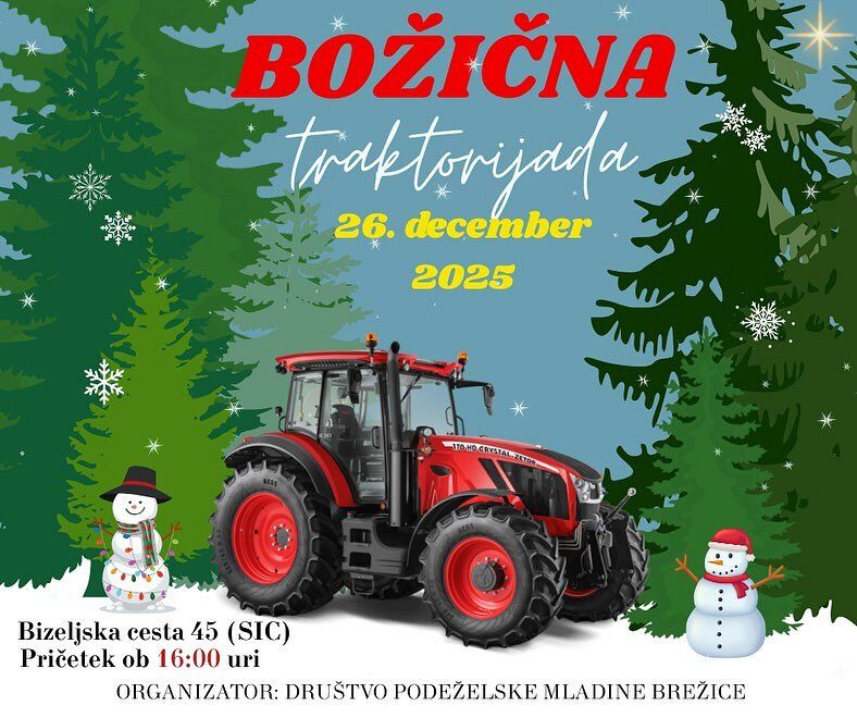 Društvo podeželske mladine Brežice vabi na tradicionalno božično traktorijado 2025, ki bo potekala v petek, 26. decembra, od 16.00 dalje.