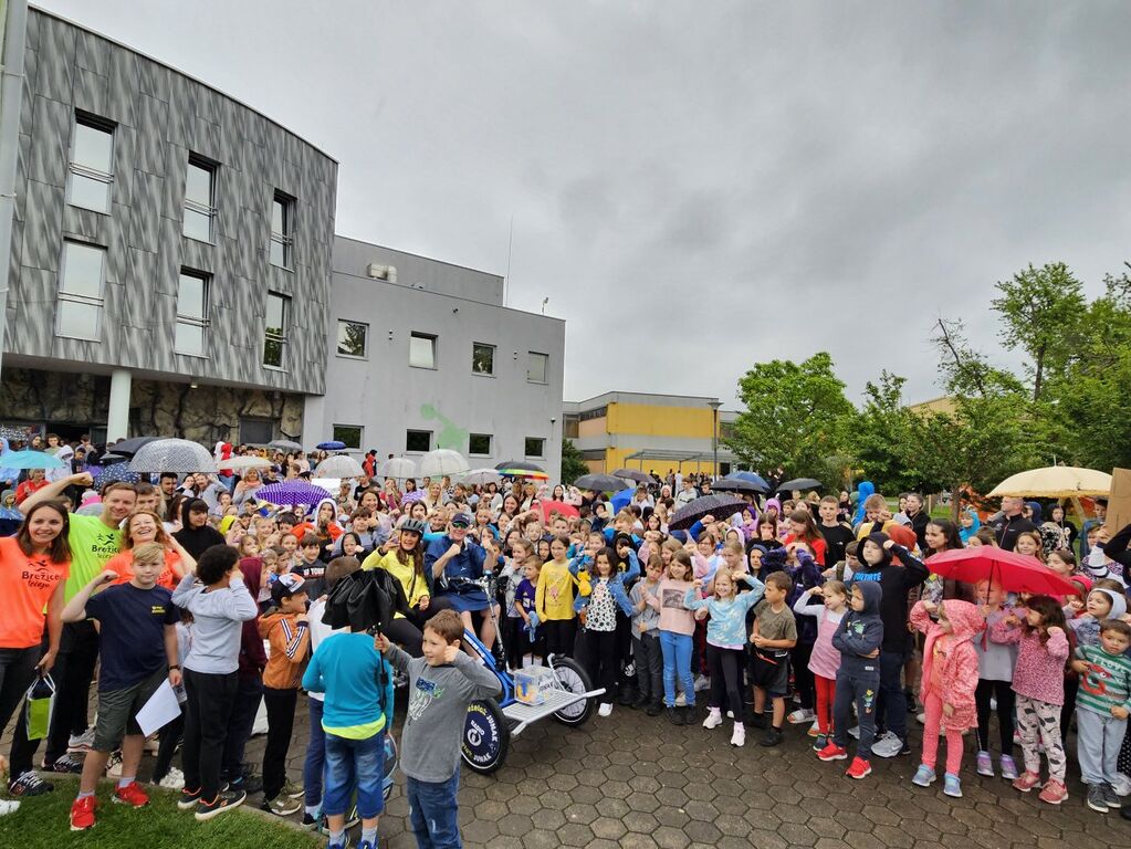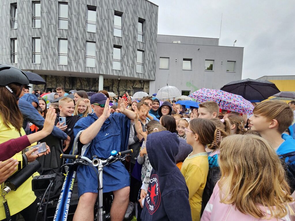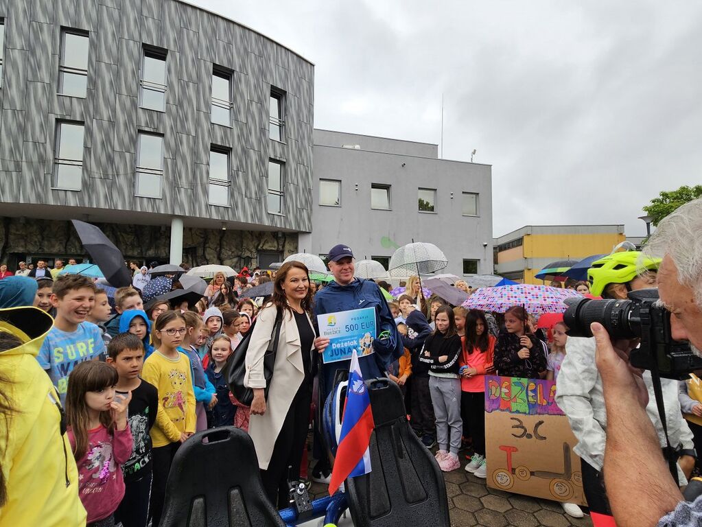 Miha je tik pred odhodom od učenca iz OŠ Brežice prejel košček čokolade za energijo, kar dokazuje kako veliko srce imajo naši otroci.